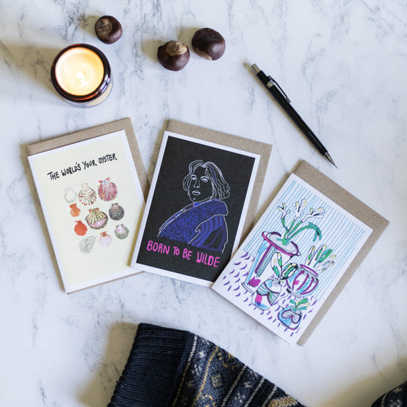 We grew up in Brighton, met at school and have been pals ever since. As creatives ourselves we know how tough it is to get your work out there, so we give our talented artist mates a boost by showcasing their amazing designs far and wide with our cards.