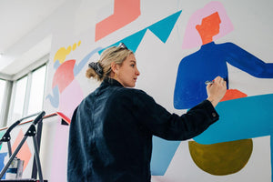 Alice is a Brighton based visual artist who works across mediums of illustration, animation and murals. Her work ignites feelings of curiosity and playfulness through her surreal characters with block colour shapes and patterns. She often offsets dynamic colour palettes against dark backgrounds, whilst detailing noise and texture, giving her work a bold and distinguishable style.