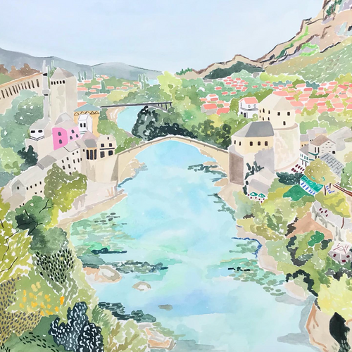 Sophie is a UK based Artist and Illustrator who has developed her love of painting into a range of illustrations inspired by memories, travel and places in nature. Her work hopes to evoke a sense of wanderlust for the natural world, defined by detailed pattern marks and a variety of uplifting colour combinations. Sophie works with many mediums, all her artwork is drawn and painted by hand in which she particularly enjoys using watercolour and gouache.